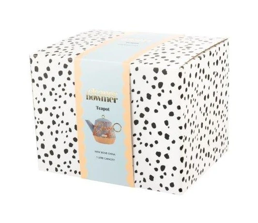 With a unique scallop shaped base, chic palm print and sophisticated gold loop handles, the teapot is elegant and fun. Perfect as a unique gift for a friend or as a standout addition to your home.Made from new bone china that keeps the heat in your pot, the Palm Teapot is dishwasher safe, easy to clean and made to last.Â