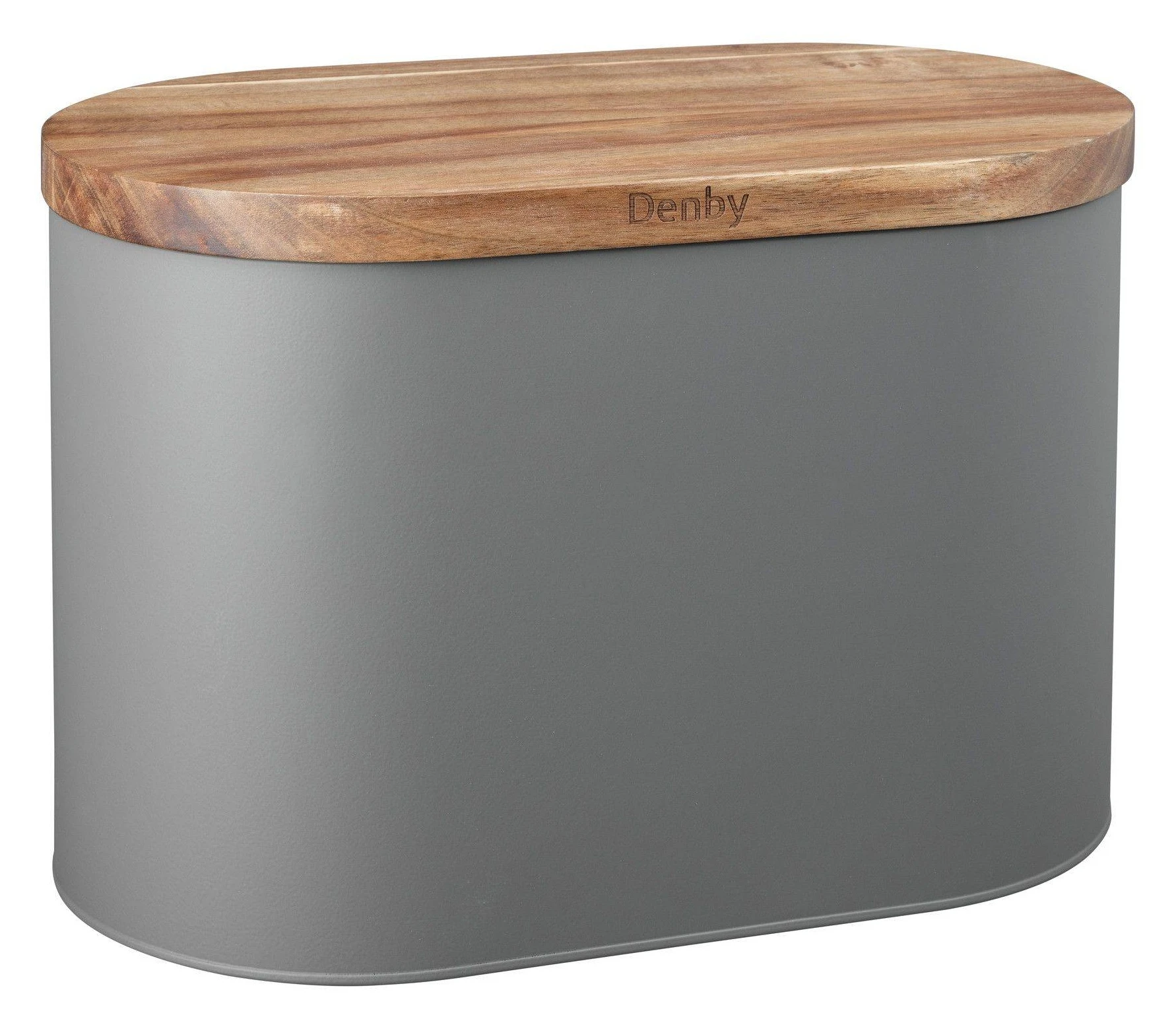 A stylish bread bin crafted from Galvanised Steel with a contemporary matt finish, complete with an Acacia wooden lid which can double up as a handy chopping board.