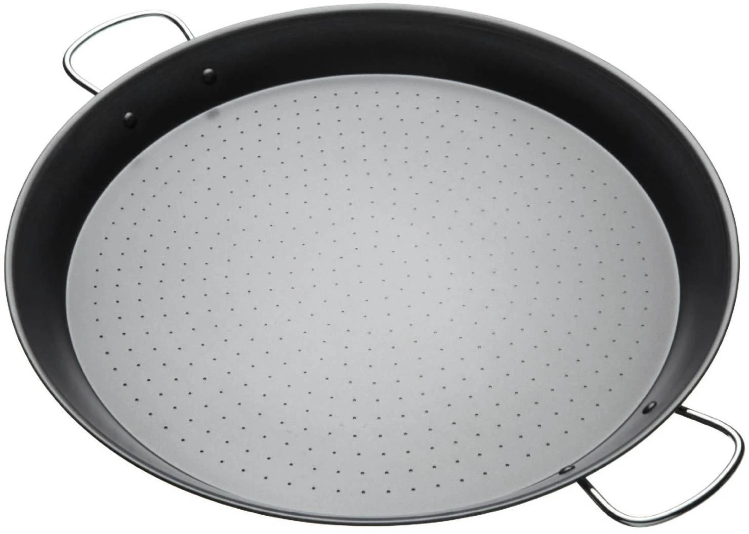 This authentic individual non-stick paella pan has a hammered base with twin riveted side handles for comfortable, easy use.
