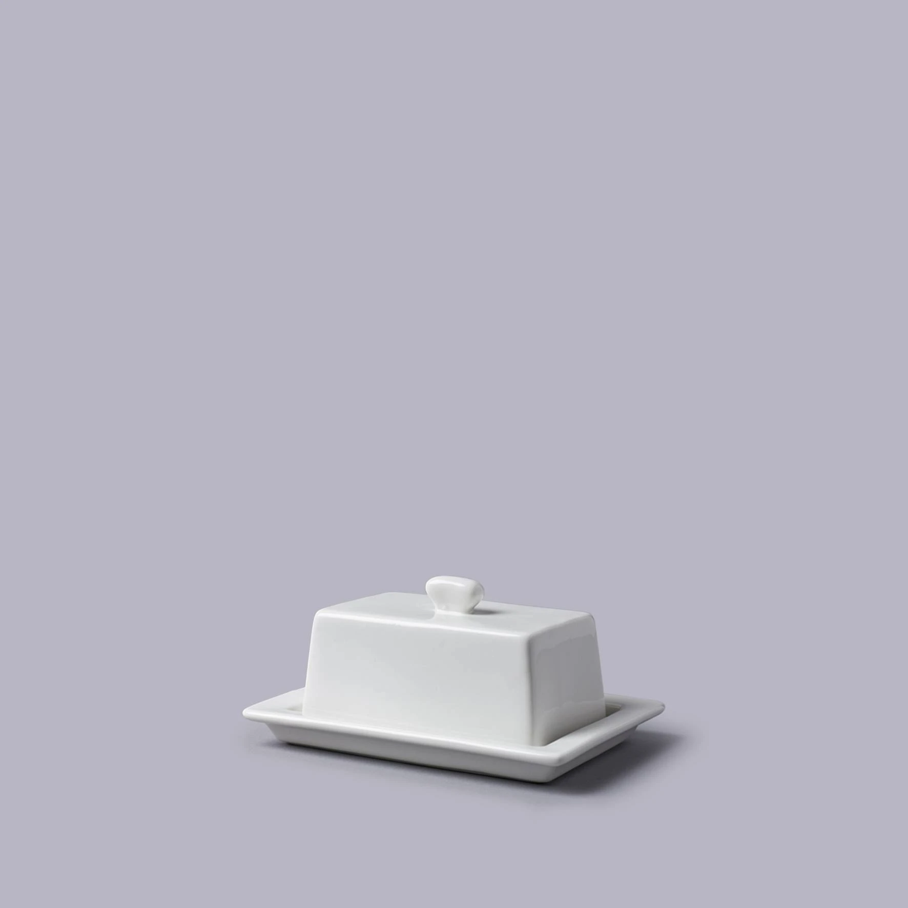 A Premium quality white porcelain serving dish designed to hold and serve butter or margarine. This stylish traditional design premium butter dish is great for the table, ideal for keeping proper butter soft for toast or baking. Durable and versatile serve ware, classical white crockery food holder, smooth gloss glaze finish.